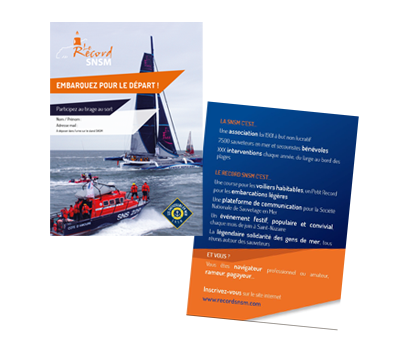 Vårt kreativa team har anpassat den visuella identiteten för Record SNSM till flygblad avsedda för ett prislott.