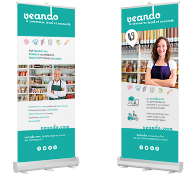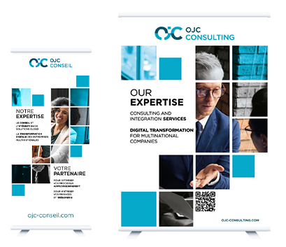 Oavsett om det är för att ackompanjera dina evenemang eller för att förhöja dina utrymmen, spelar skyltning en nyckelroll: vägleder, informerar och stärker ditt varumärkesimage. Roll-ups, kakemonos, montrar, lokalutsmyckning... så många verktyg som översätter din identitet till verkliga rum och i direkt kontakt med din publik. Vårt mål: att utforma stöd som kombinerar tydlighet och genomslagskraft, för evenemang och miljöer som lämnar ett bestående intryck.